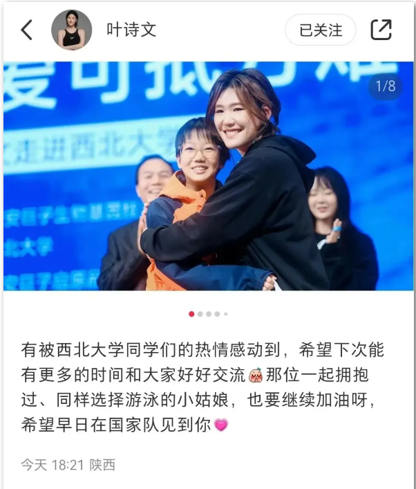叶诗文随后在自己的社交账号发文称:“有被云博app官方在线入口同学们的热情感动到,希望下次能有更多的时间和大家好好交流。”