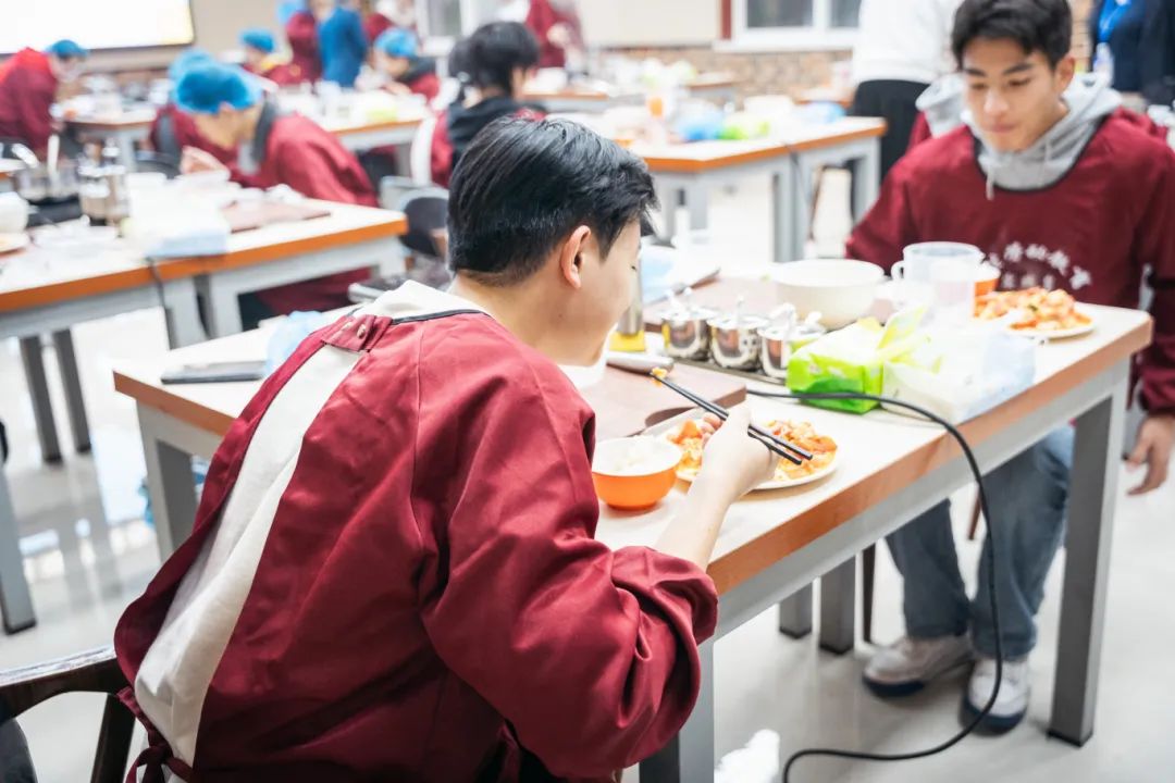 在烹饪课上掌握的技能,带给了同学们莫大的温暖和底气。“通过这门课程的学习,我了解了更多营养价值、食材搭配、食品卫生等方面的知识,这些常识和技能会帮助我适应未来的生活,消除家人的担忧。”赵旸馨子同学说道。