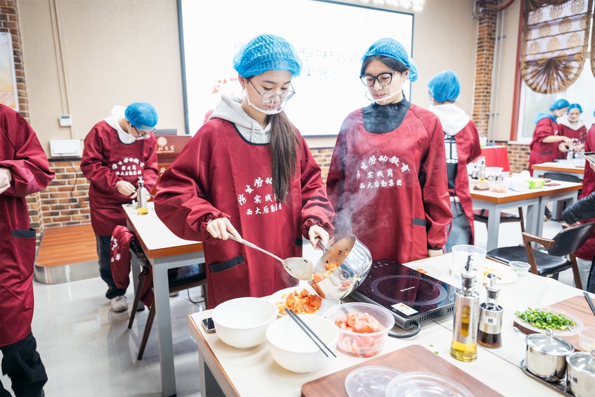 “我之前几乎没有做过菜,但是在课上通过和其他同学之间的交流,我很快便学会了西红柿炒鸡蛋的做法。”电子信息科学与技术专业的李冠纬同学兴奋地分享道。