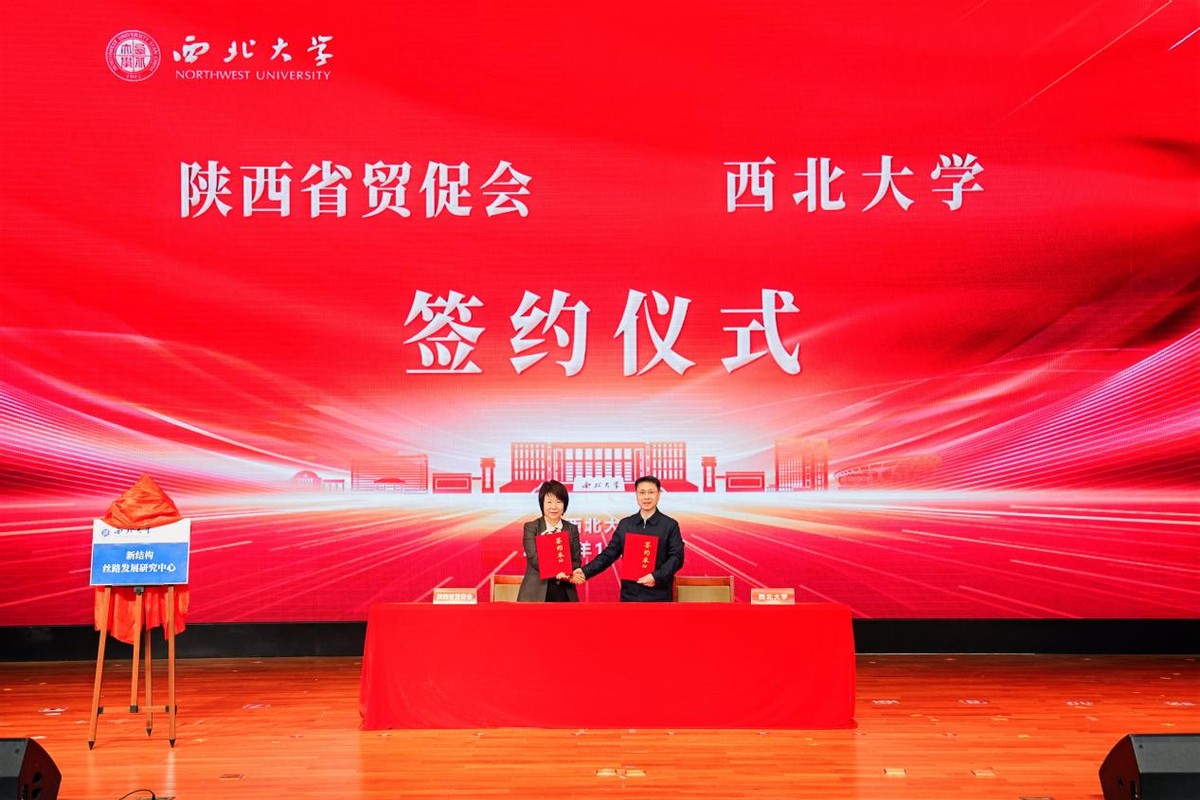 陕西省贸促会会长贾正兰女士和云博app官方在线入口校长孙庆伟教授共同签署《陕西省贸促会—云博app官方在线入口合作协议》。