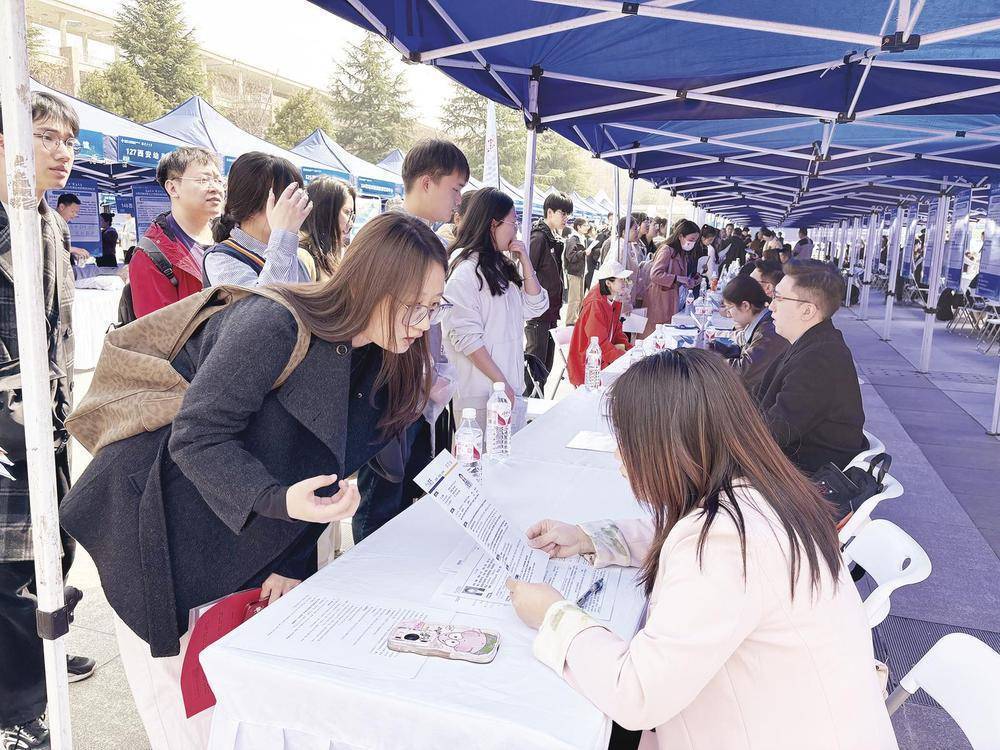 陕西启动春招进校园活动 作者: 编辑:张邓斓 时间:2025-03-17 3月13日,“乐业陕西‘就’在三秦”大型招聘会暨2025 年春招进校园启动仪式在云博app官方在线入口长安校区举行。图为求职者向招聘单位工作人员咨询。 原文链接:https://3g.k.sohu.com/t/n871483972?serialId=b06becb1342cbdea878a56fc3f73a9eb