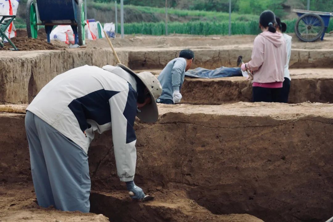 初到实习地点时,大家期待有之,忐忑亦有之。但考古基地快节奏的工作氛围使他们来不及将复杂的思绪细细安放,便紧锣密鼓地投入到了发掘工作当中。作为第一次“下工地”的新手,他们在实习正式开始后不久便遇到了诸多困难。其中,“怎么挖也挖不到”的问题尤为凸显:前往旬邑西头遗址的李浩榛所负责的第一个探方是空方,向下发掘几十厘米也没有什么收获;而前往宝鸡魏家崖遗址的李咏莉在实习初期因墓葬埋藏过深而遇到了类似的问题。