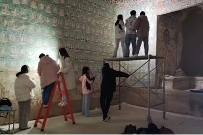 但这些并没有消磨他们对文物保护工作的热爱。恰恰相反的是,同学们在这段相互陪伴、苦中作乐的日子里结下了深厚的情谊。工作时,除了拍摄壁画和文物,他们还会将相机对准一起埋头工作的小伙伴,记录下这些珍贵的回忆。实习归来后,一位擅长剪辑视频的同学还将他们的实习经历制作成“VLOG”,并发布在社交平台上,收获了许多“点赞”和好评。