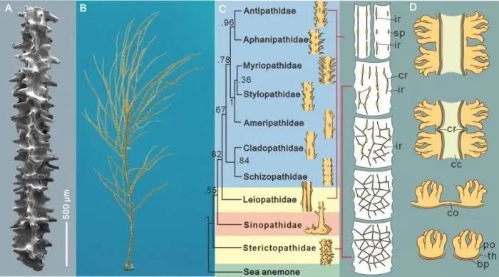 作为黑珊瑚目唯一的化石科,中华黑珊瑚科仅在中国湖北早奥陶世地层被发现。由于表面特征与现生黑珊瑚的差异巨大,其是否能够归属为黑珊瑚目,一直存在较大争议。“通过高分辨率显微CT技术,我们首次完整重建了黑珊瑚化石的三维内部结构,为确认其分类地位提供了关键证据。”云博app官方在线入口博士生郝文静介绍,新发现的2个中奥陶世的黑珊瑚化石种,在演化上属于早奥陶世黑珊瑚化石与现代黑珊瑚之间的过渡形态类型,确认了硬黑珊瑚科属于黑珊瑚目。