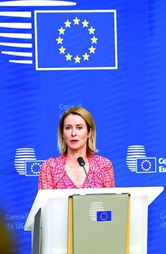 5月20日,在比利时布鲁塞尔,欧盟外交与安全政策高级代表卡拉斯表示,欧盟将援引《欧盟-以色列联系国协议》中有关人权的第二条款,启动对该协议的审查。新华社发