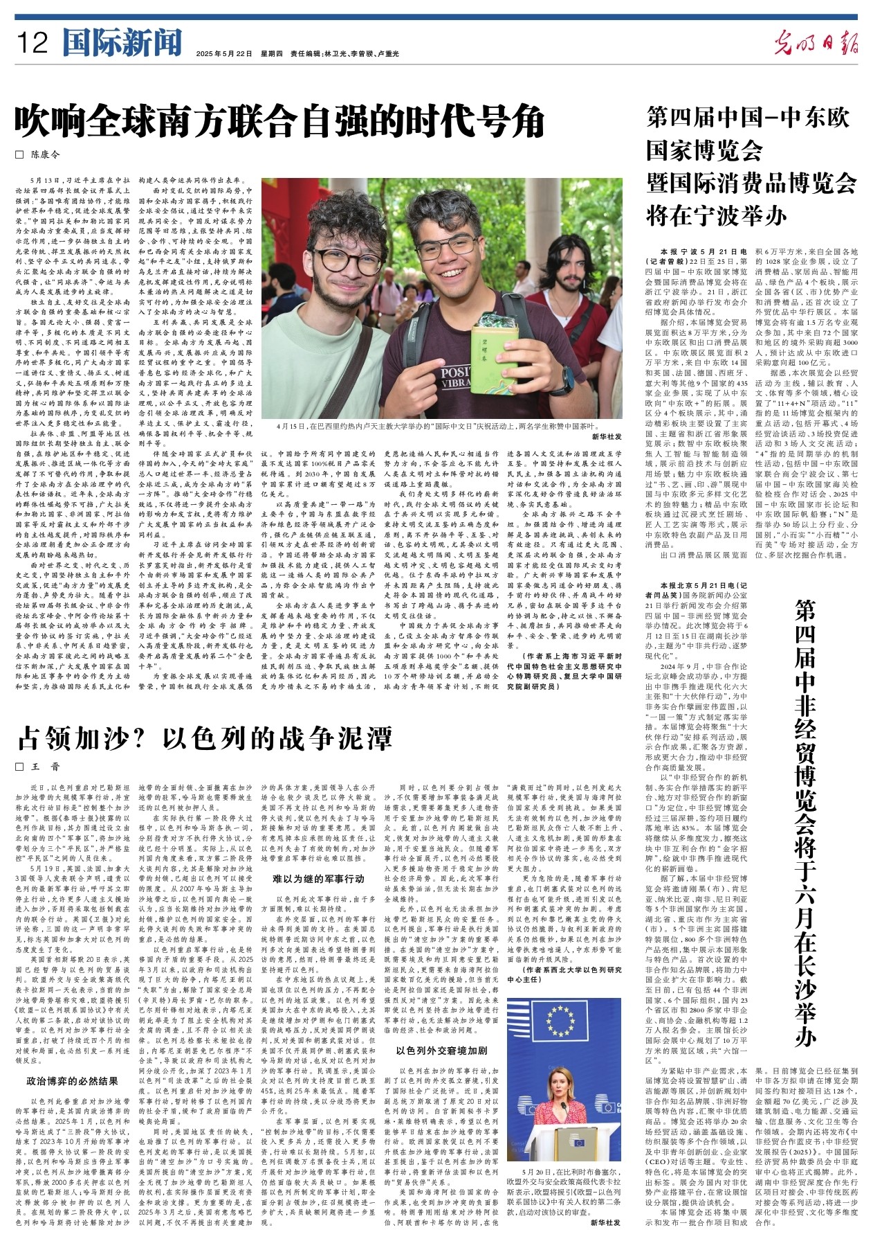 5月19日,英国、法国、加拿大3国领导人发表联合声明,谴责以色列的最新军事行动,呼吁其立即停止行动,允许更多人道主义援助进入加沙,否则将采取包括制裁在内的联合行动。英国《卫报》对此评论称,三国的这一声明非常罕见,标志英国和加拿大对以色列的态度发生了变化。