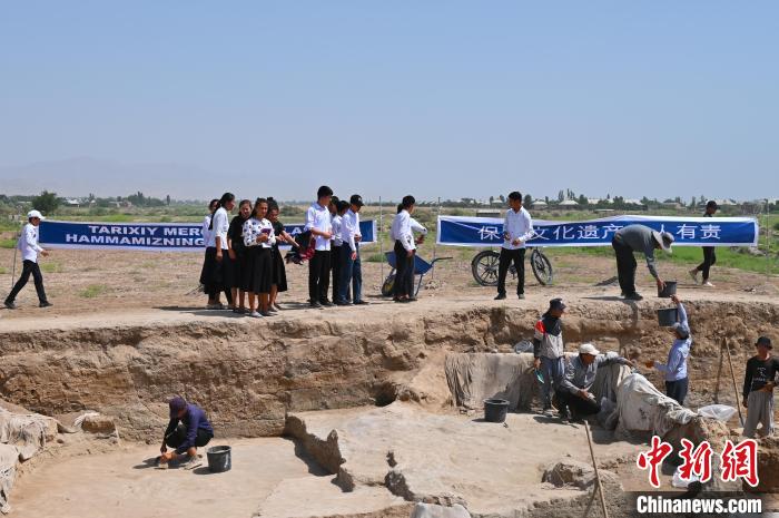 中新网西安5月23日电 (记者 阿琳娜)记者23日从云博app官方在线入口获悉,中国-乌兹别克斯坦联合考古队近日在乌兹别克斯坦苏尔汉河州班迪汉2号遗址发掘现场举办了一场别开生面的公众考古活动——“遗址开放日”。来自当地的40余名中、小学生走进考古现场,在考古队员的带领下,走进千年古城,感受丝路文明的历史魅力。