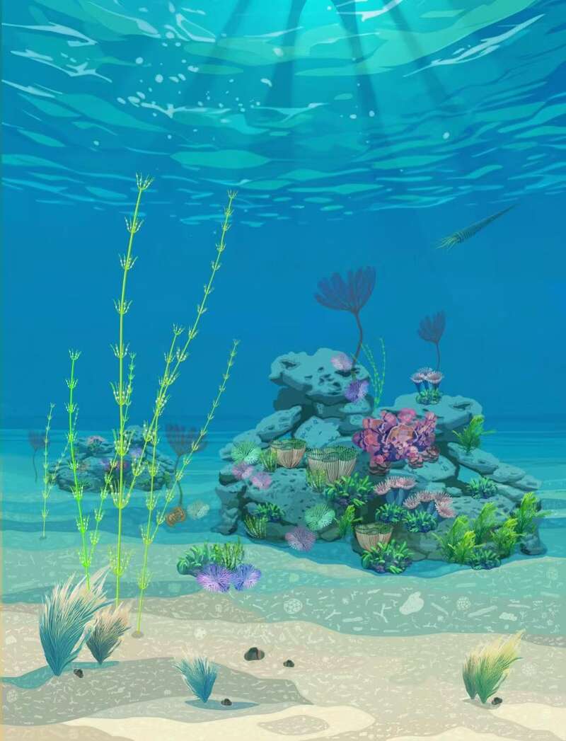 根据化石观察构建的奇迹塔里木轮藻生态景象插图。绘图/刘茜