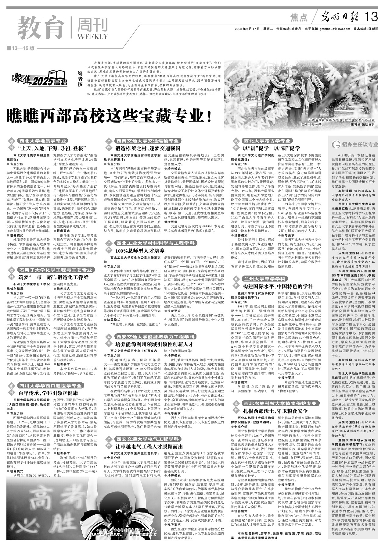 在广大学子填报高考志愿的时刻,本报推出“瞧瞧西部高校这些宝藏专业”特别策划,邀请部分西部高校的招生办公室主任或相关院系负责人,立足国家战略需求,深挖西部高校学科优势,展现学校育人特色,为全国考生带来前沿、权威的专业解读。
