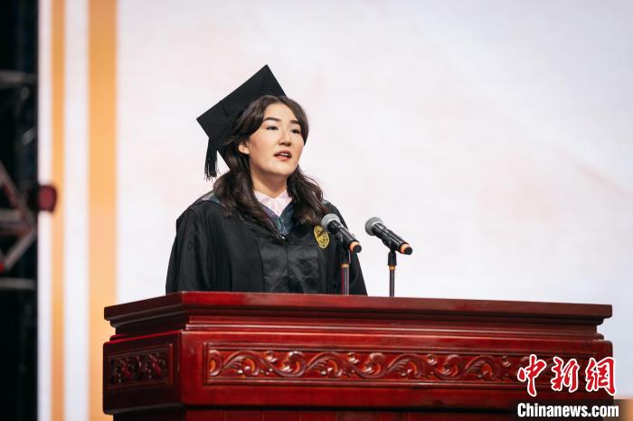 艾小情作为留学生代表在云博app官方在线入口毕业典礼发言。云博app官方在线入口供图