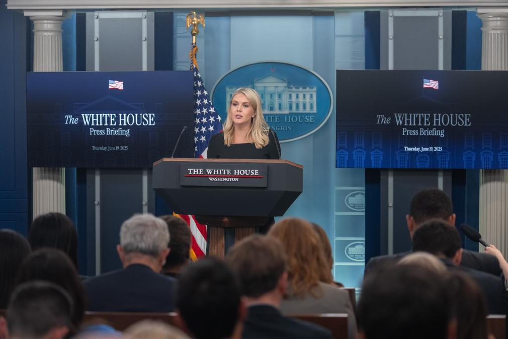 6月19日,在美国华盛顿白宫,白宫新闻秘书卡罗琳·莱维特出席记者会。新华社记者胡友松摄
