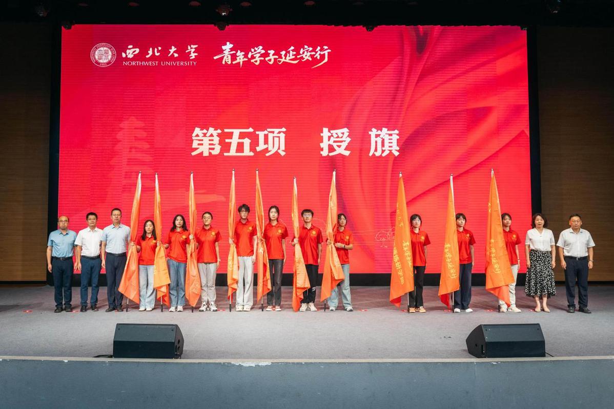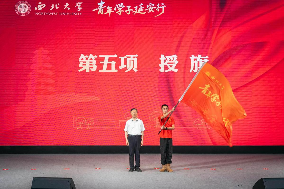 活动中,蒋林和与会部门负责人为“云博app官方在线入口青年学子延安行”研学团和10个班级代表授旗。