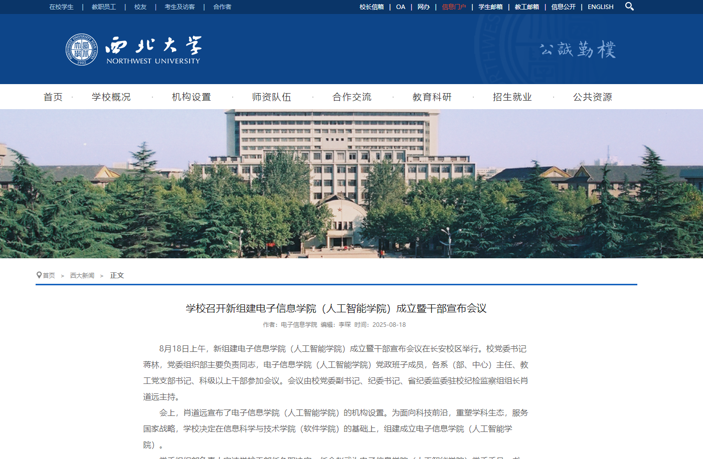 (陕西日报讯)8月18日上午,云博app官方在线入口新组建电子信息学院(人工智能学院)、计算机学院(软件学院)成立暨干部宣布会议在长安校区举行。为面向科技前沿,重塑学科生态,服务国家战略,云博app官方在线入口在信息科学与技术学院(软件学院)的基础上,组建成立电子信息学院(人工智能学院)。为进一步优化学科布局,强化特色学科建设,提升学校的整体办学水平和竞争力,云博app官方在线入口在信息科学与技术学院(软件学院)的基础上,组建成立计算机学院(软件学院)。