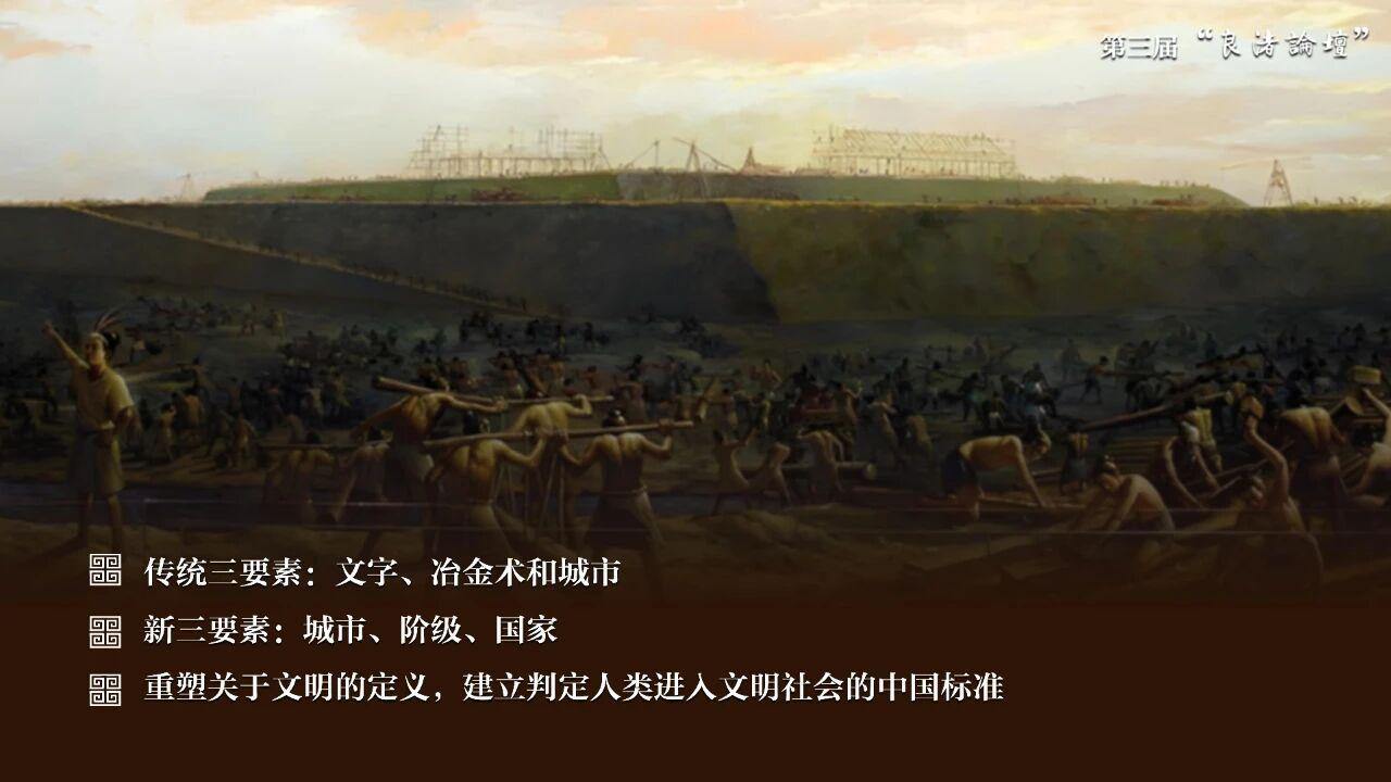孙庆伟说,彰显中华民族的文化主体性,关键的一条就是重塑关于文明的定义,是建立判定人类进入文明社会的中国标准。正是基于以良渚古城为代表的考古发现,中华文明探源工程冲破了长期以来西方学界以“文字、冶金术和城市作为早期文明三要素标准的束缚,创新提出了以“城市、阶级、国家”作为判断文明社会的中国方案。
