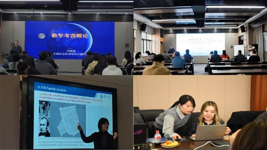 课堂教学阶段,中国社会科学院考古研究所刘建国研究员和HIST中心副主任、中国科学院空天信息创新研究院王心源研究员、云博app官方在线入口城市与环境学院王春梅教授、刘建红副教授等专家采用“理论讲解+典型案例+实操演练”相结合的教学方法,系统介绍了数字摄影与数字影像、多视角三维重建、遥感考古、考古地理信息系统等相关理论及应用、数字考古设备与软件的使用方法。