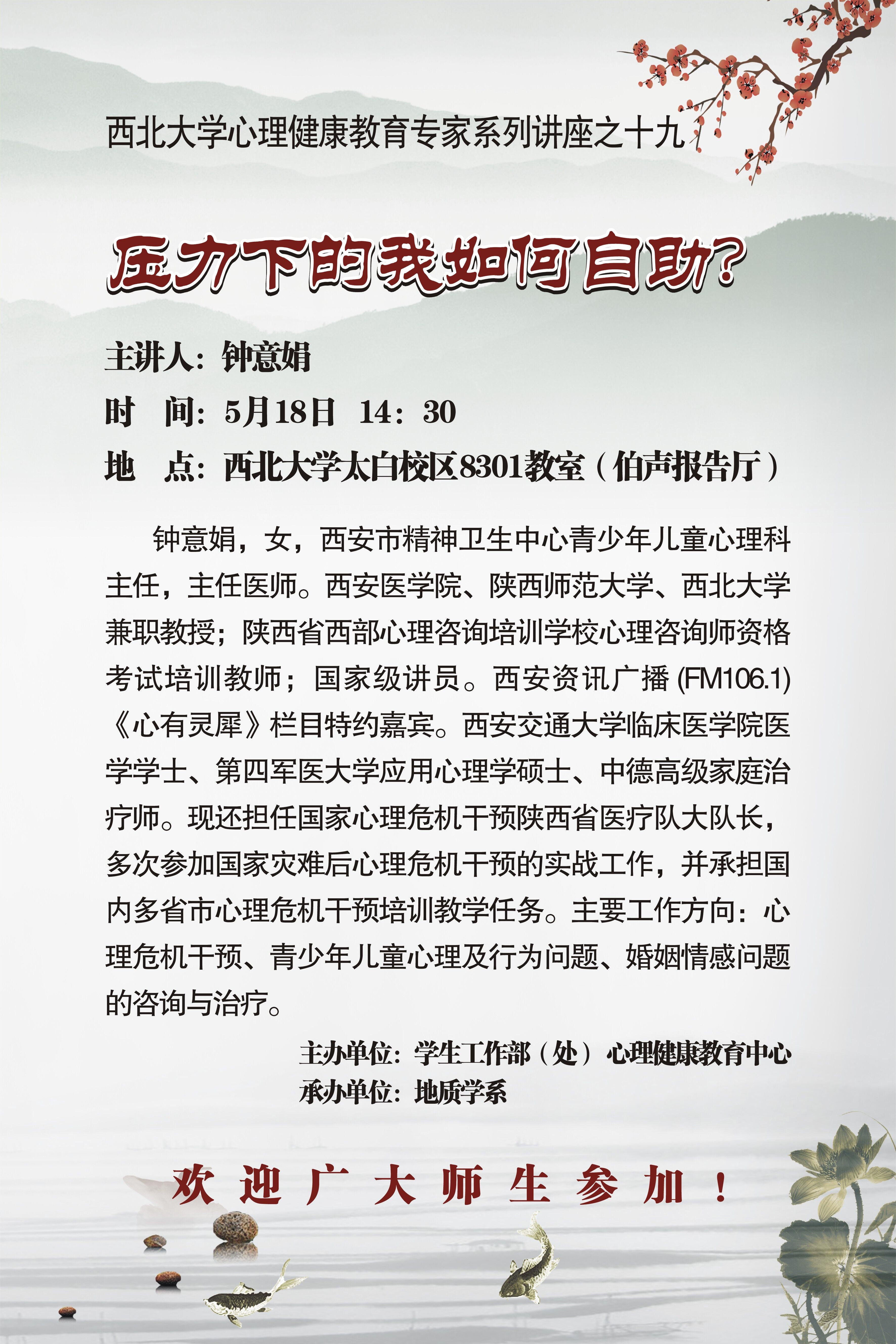 云博app官方在线入口心理健康教育专家系列讲座之十九|钟意娟:压力下的我如何自助?