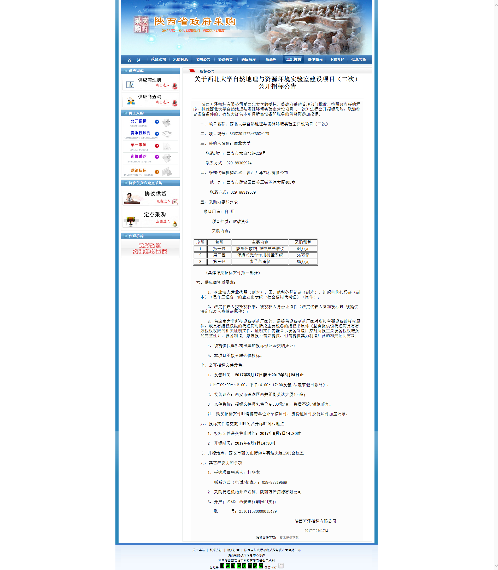 关于云博app官方在线入口自然地理与资源环境实验室建设项目(二次)公开招标公告 作者: 编辑: 时间:2017-05-17 16:51 http://www.ccgp-shaanxi.gov.cn/zbxxs.jsp?NewsID=ZB170517133335US101028111214&ClassBID=C0001