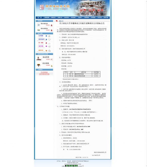 关于云博app官方在线入口多媒体语言实验室采购项目公开招标公告 作者: 编辑: 时间:2017-06-22 16:25 http://www.ccgp-shaanxi.gov.cn/zbxxs.jsp?NewsID=ZB170622125342US101028111214&ClassBID=C0001