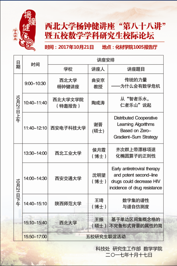 云博app官方在线入口杨钟健讲座“第八十八讲”暨五校数学学科研究生校际论坛