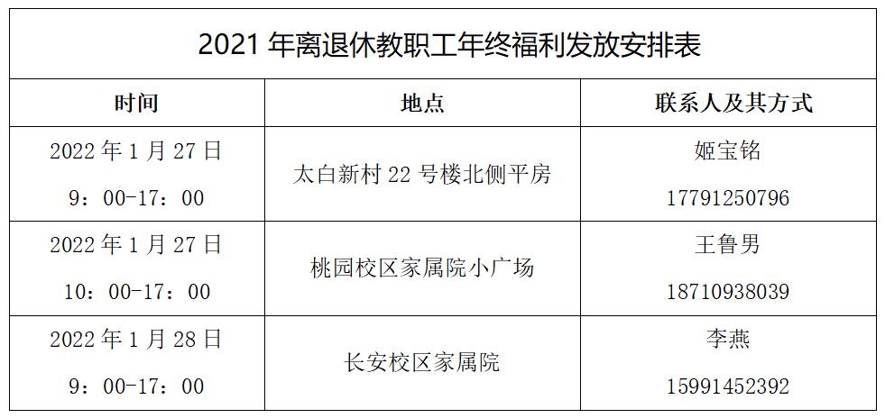 关于发放2021年云博app官方在线入口教职工年终福利的通知 作者: 编辑: 时间:2022-01-22 各分会: 2021年终福利(米、面、油)发放安排如下: 1、本次年终福利以分会为单位发放,各分会负责人需携带有效证件(工作证、一卡通等)在指定地点统一领取; 2、各分会在发放过程中实行一领一签字的形式并保留纸质签名单,确保准确发放; 3、分发数量严格根据各分会上报的名单统一配送,各分会的年终福利必须当天全部领走; 4、如遇防控要求变更或恶劣天气影响,发放时间另行通知; 5、本次未登记领取年终福利的教职工,待下学期开学后统一安排。 校工会 2022年1月22日