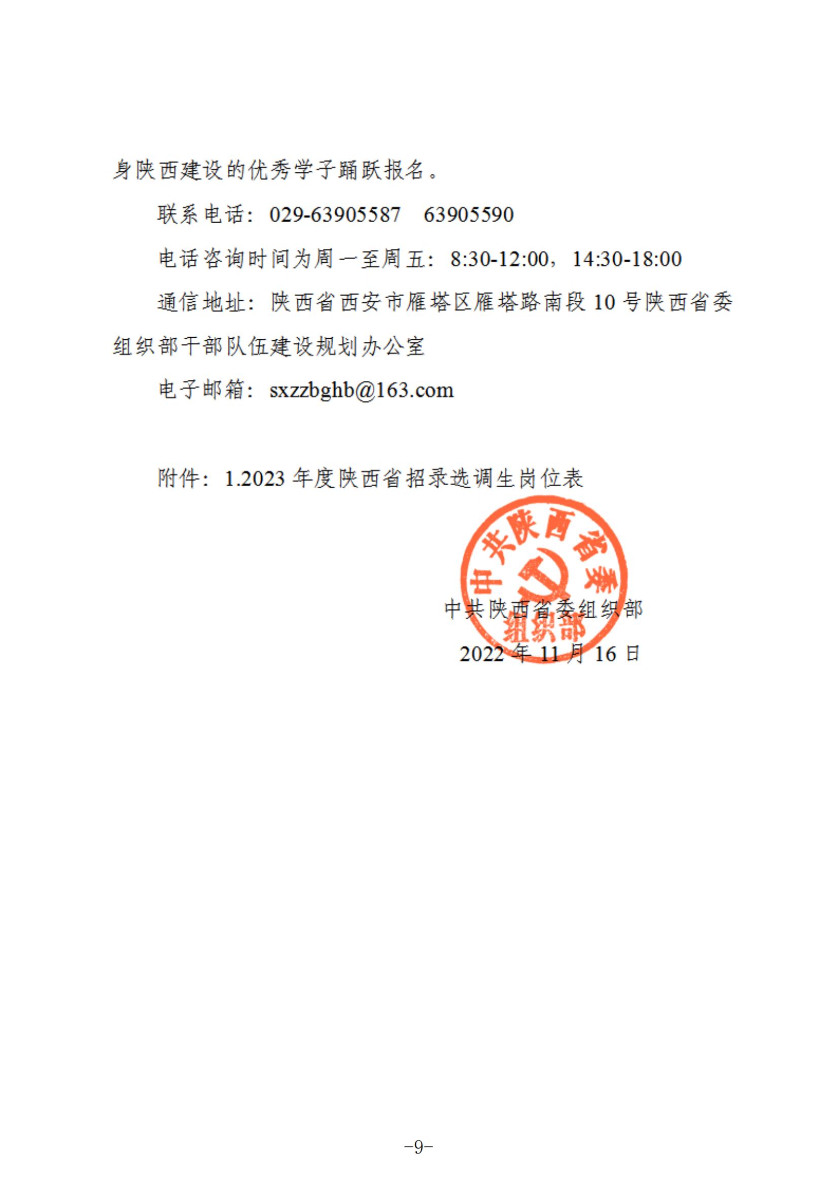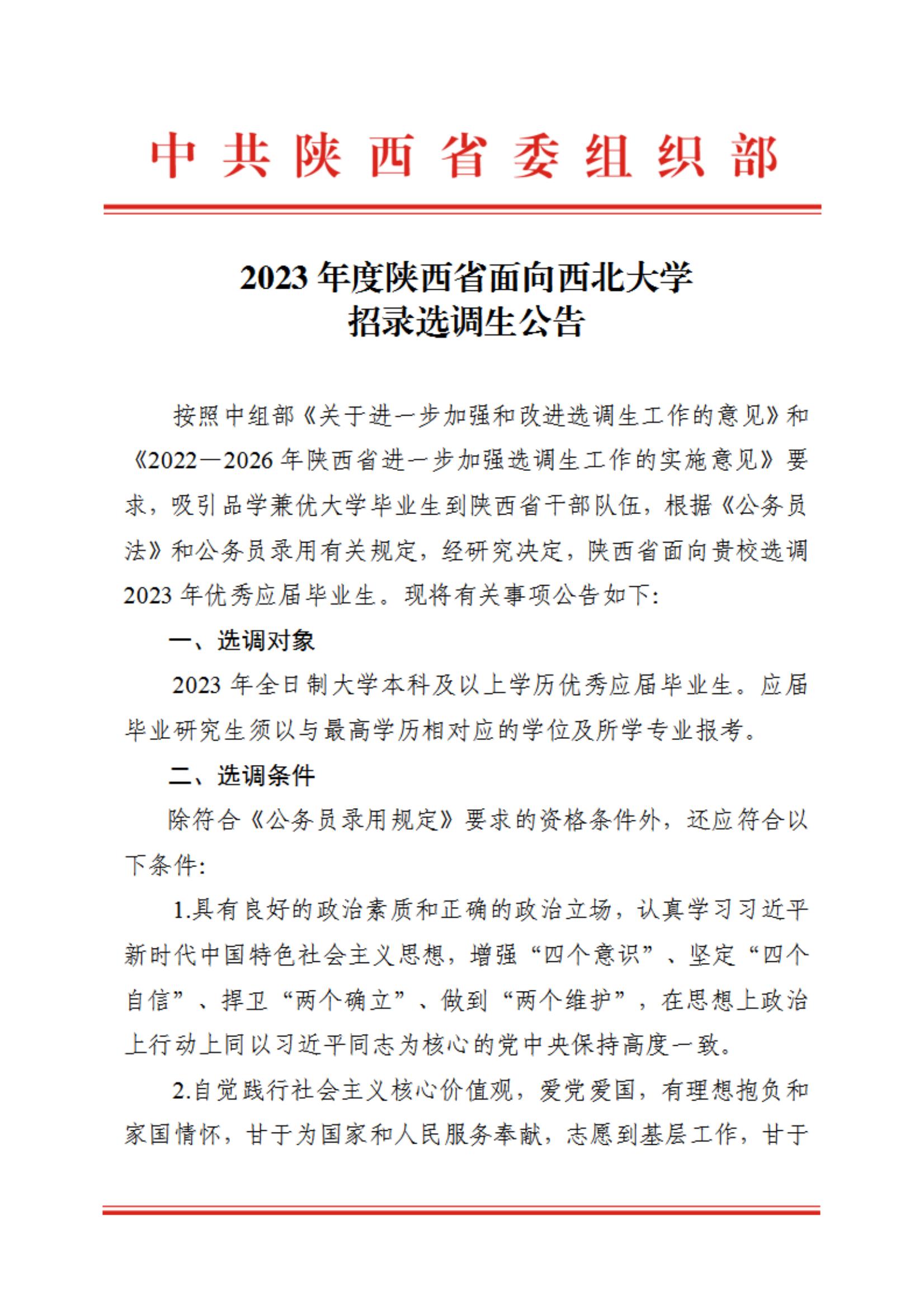 2023年度陕西省面向云博app官方在线入口招录选调生公告