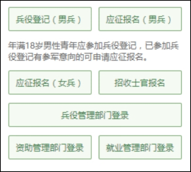 方式一:全国征兵网报名。在全国征兵网上先进行兵役登记后,再按流程进行应征报名(网址:http://www.gfbzb.gov.cn)。