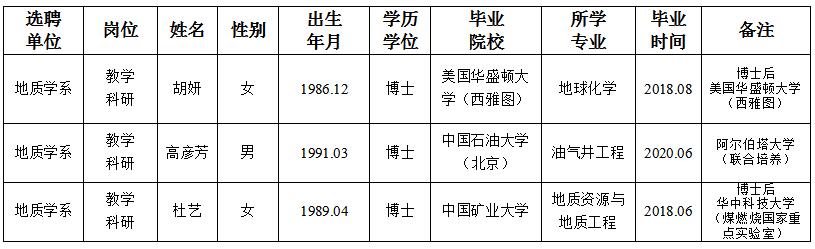 经用人单位及教学督导考核、学校研究,拟同意选聘下列人员来校工作,其聘任关系为A类人事代理。本着公平、公正、公开的原则,现将拟选聘人员基本情况公示如下: