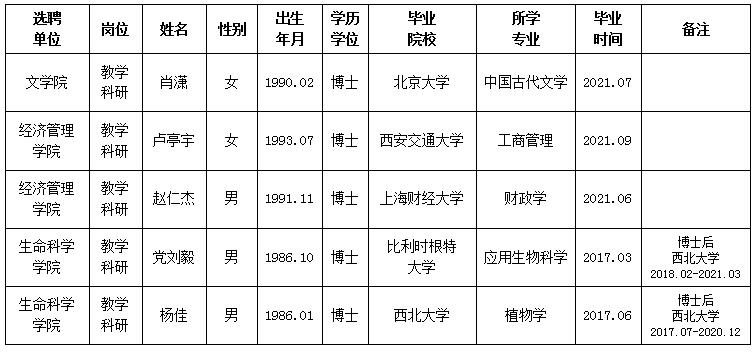 经用人单位推荐,人力资源部审查,学校教学督导及院系相关专家考核,云博app官方在线入口拟确定下列人员来校工作。本着公平、公正、公开的原则,现将本次拟选聘人员基本情况公示如下: