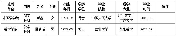 经用人单位推荐,人力资源部审查,学校教学督导及院系相关专家考核,云博app官方在线入口拟确定下列人员来校工作。本着公平、公正、公开的原则,现将本次拟选聘人员基本情况公示如下: