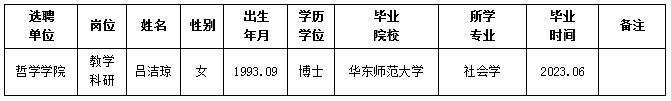 经用人单位推荐,人力资源部审查,学校教学督导及院系相关专家考核,云博app官方在线入口拟确定下列人员来校工作。本着公平、公正、公开的原则,现将本次拟选聘人员基本情况公示如下: