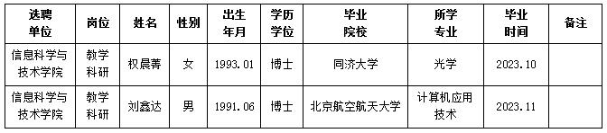 经用人单位推荐,人力资源部审查,学校教学督导及院系相关专家考核,云博app官方在线入口拟确定下列人员来校工作。本着公平、公正、公开的原则,现将本次拟选聘人员基本情况公示如下: