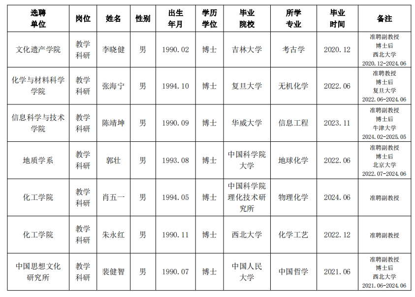经用人单位推荐,人力资源部审查,学校教学督导及院系相关专家考核,学校教师高级职务特别评审,云博app官方在线入口拟确定下列人员来校工作,聘任方式为事业编特别选聘。本着公平、公正、公开的原则,现将本次拟选聘人员基本情况公示如下: