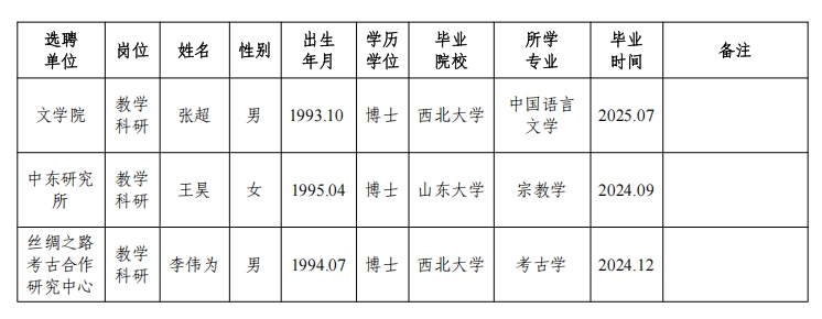 关于教学科研单位选聘教师情况的公示