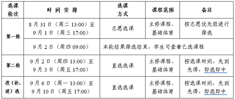 1.选课分三轮进行,具体时间如下: