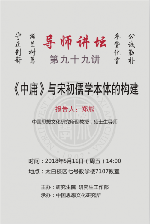 导师讲坛第九十九讲:《中庸》与宋初儒学本体的构建