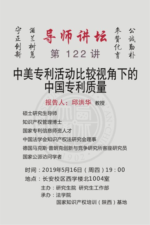 导师讲坛第122讲:中美专利活动比较视角下的中国专利质量