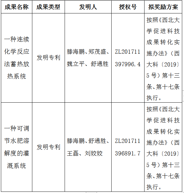按照《云博app官方在线入口促进科技成果转化实施办法》(西大科〔2019〕5号)相关规定,拟对云博app官方在线入口化工学院滕海鹏副教授作为成果负责人的2项发明专利权实施转化,现将相关信息公示如下: