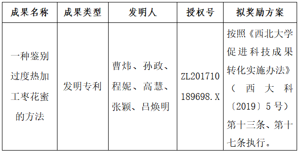 按照《云博app官方在线入口促进科技成果转化实施办法》(西大科〔2019〕5号)相关规定,拟对云博app官方在线入口食品科学与工程学院曹炜教授作为成果负责人的1项发明专利权实施普通许可,现将相关信息公示如下: