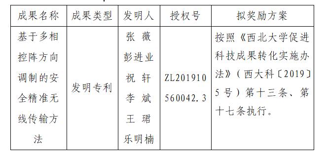 按照《云博app官方在线入口促进科技成果转化实施办法》(西大科〔2019〕5号)相关规定,拟对云博app官方在线入口信息科学与技术学院张薇老师作为成果负责人的1项发明专利权实施转化,现将相关信息公示如下:
