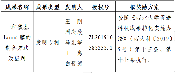 按照《云博app官方在线入口促进科技成果转化实施办法》(西大科〔2019〕5号)相关规定,拟对云博app官方在线入口光子所王刚副教授作为成果负责人的1项发明专利权实施转化,现将相关信息公示如下: