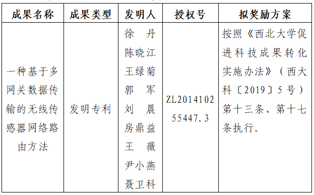 附件:拟转让成果信息及奖励方案