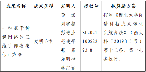 按照《云博app官方在线入口促进科技成果转化实施办法》(西大科〔2019〕5号)相关规定,拟对云博app官方在线入口信息科学与技术学院张薇老师作为成果负责人的1项发明专利权实施转化,现将相关信息公示如下: