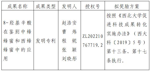 按照《云博app官方在线入口促进科技成果转化实施办法》(西大科〔2019〕5号)相关规定,拟对云博app官方在线入口食品科学与工程学院赵浩安副教授作为成果负责人的1项发明专利权实施转化,现将相关信息公示如下: