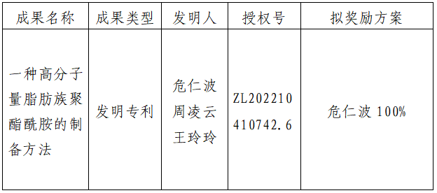 按照《云博app官方在线入口促进科技成果转化实施办法》(西大科〔2019〕5号)相关规定,拟对云博app官方在线入口化工学院危仁波教授作为成果负责人的1项发明专利权实施转化,现将相关信息公示如下: