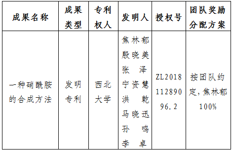 按照《云博app官方在线入口促进科技成果转化实施办法》(西大科〔2019〕5号)相关规定,拟对云博app官方在线入口化工学院焦林郁教授作为成果负责人的1项发明专利权实施转化,现将相关信息公示如下: