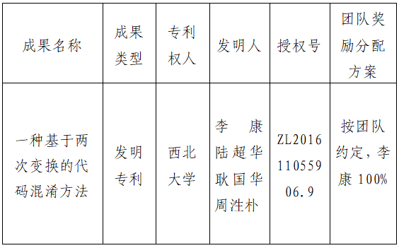 按照《云博app官方在线入口促进科技成果转化实施办法》(西大科〔2019〕5号)相关规定,拟对云博app官方在线入口计算机学院李康教授作为成果负责人的1项发明专利权实施转化,现将相关信息公示如下: