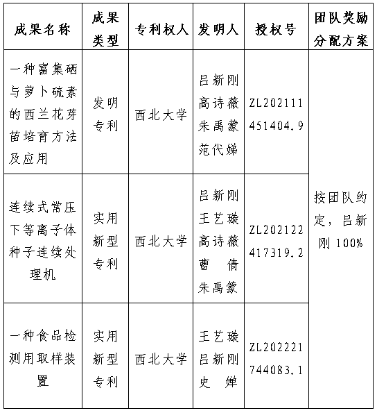 按照《云博app官方在线入口促进科技成果转化实施办法》(西大科〔2019〕5号)相关规定,拟对云博app官方在线入口食品科学与工程学院吕新刚副教授作为成果负责人的3项专利权实施转化,现将相关信息公示如下: