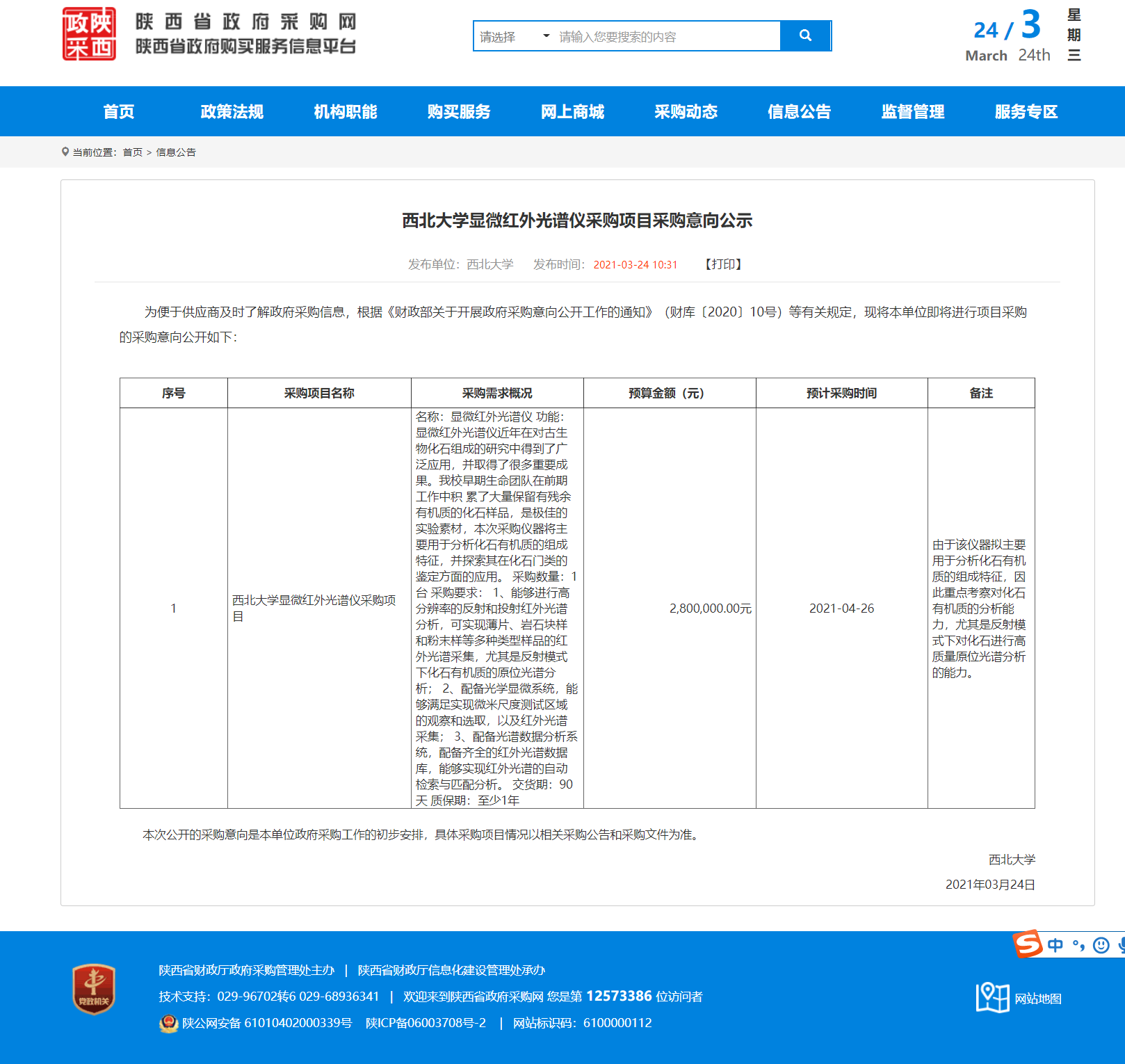 云博app官方在线入口显微红外光谱仪采购项目采购意向公示