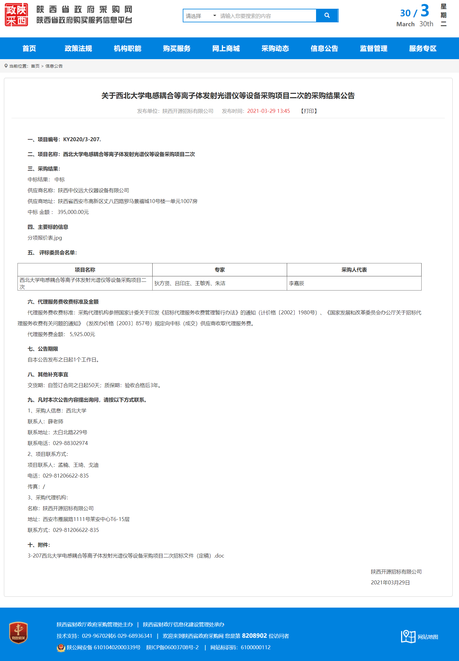 云博app官方在线入口电感耦合等离子体发射光谱仪等设备采购项目二次的采购结果公告