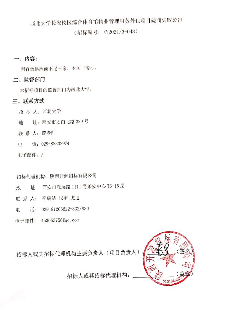 云博app官方在线入口长安校区综合体育馆物业管理服务外包项目磋商失败公告